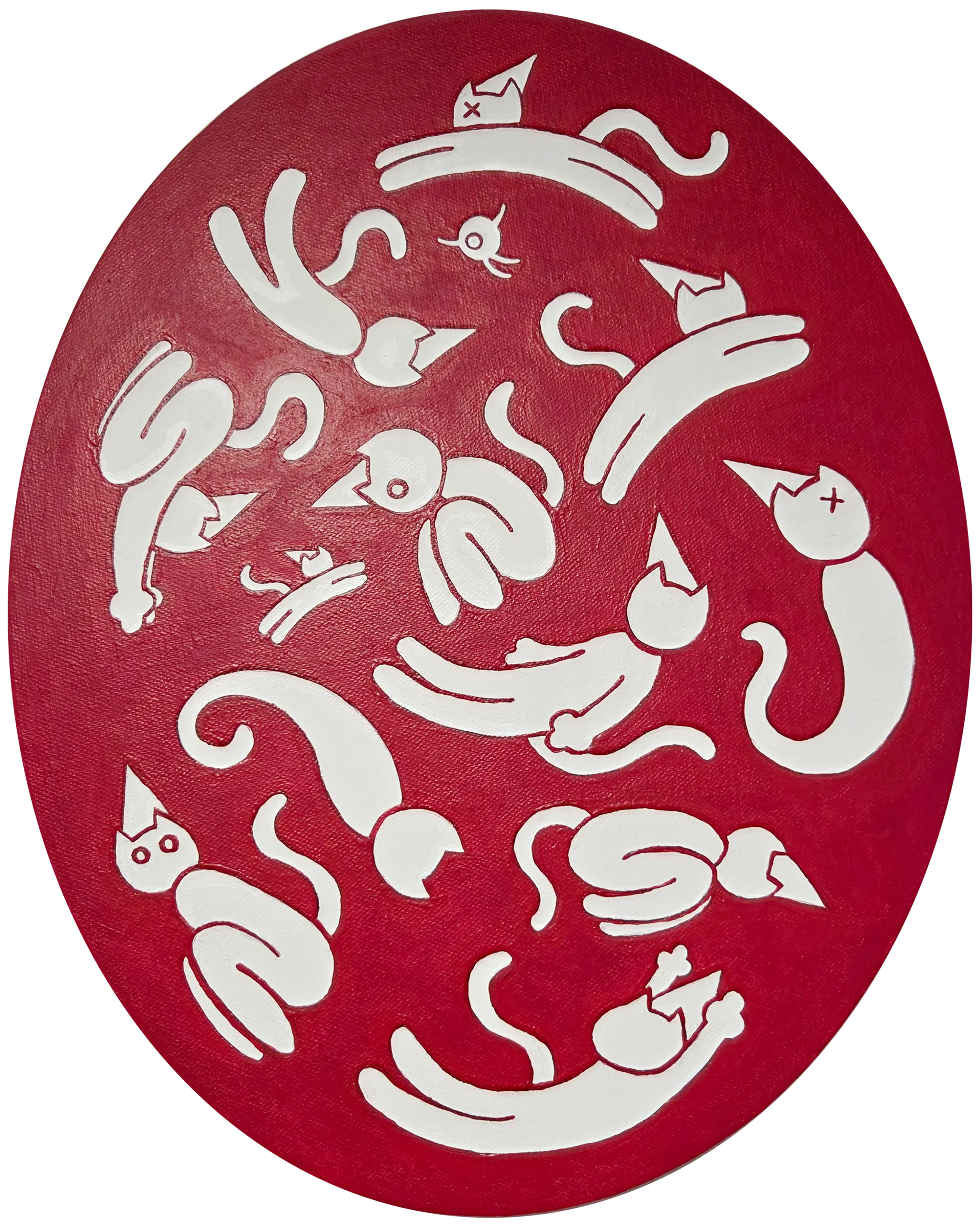 PartyCAT / Out of Reach (Deep Red) / Acrylic on Oval Canvas / 40 x 50 cm / 2025 / 1,000,000