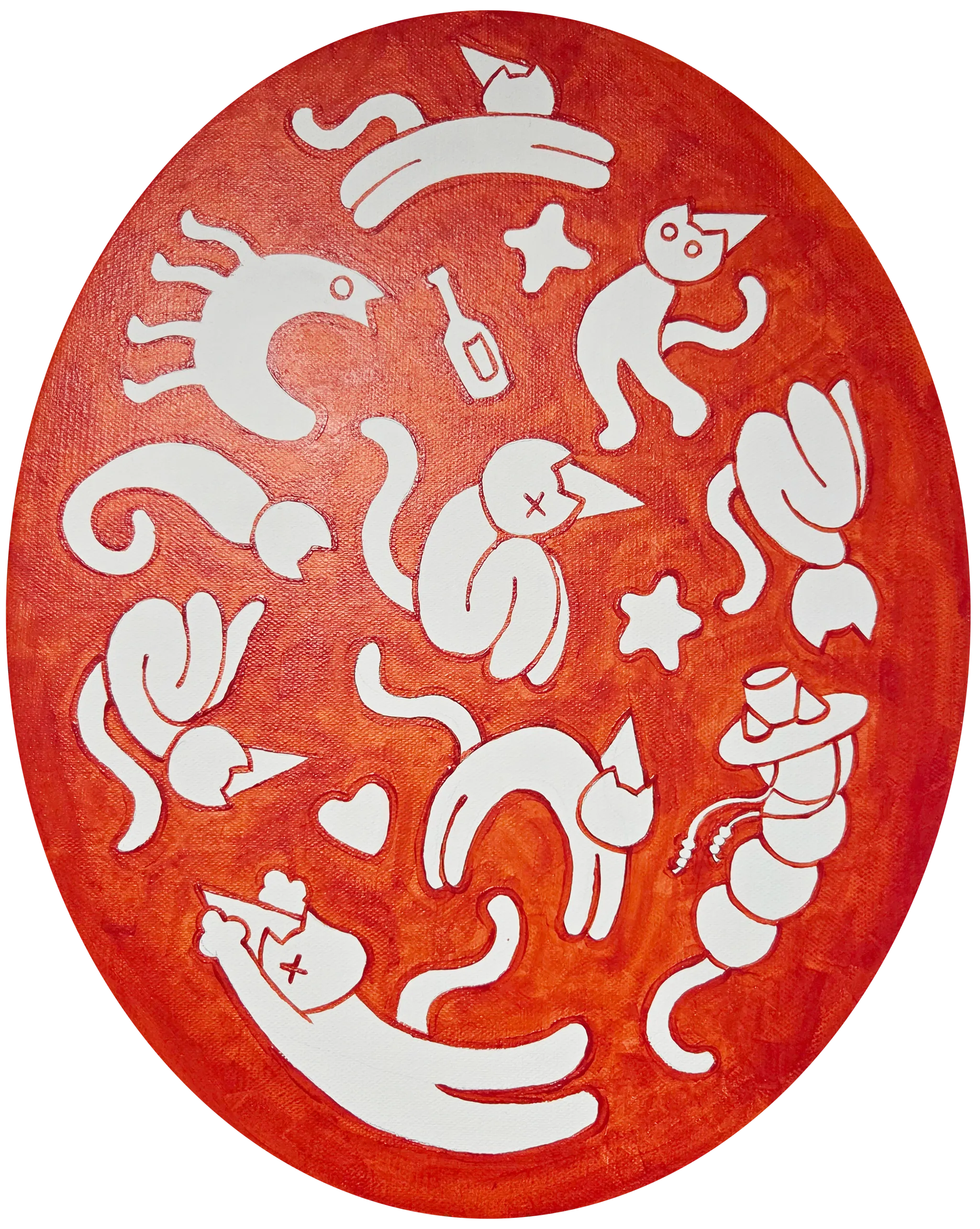 PartyCAT / Out of Reach (Vermilion) / Acrylic on Oval Canvas / 40 x 50 cm / 2025 / 1,000,000
