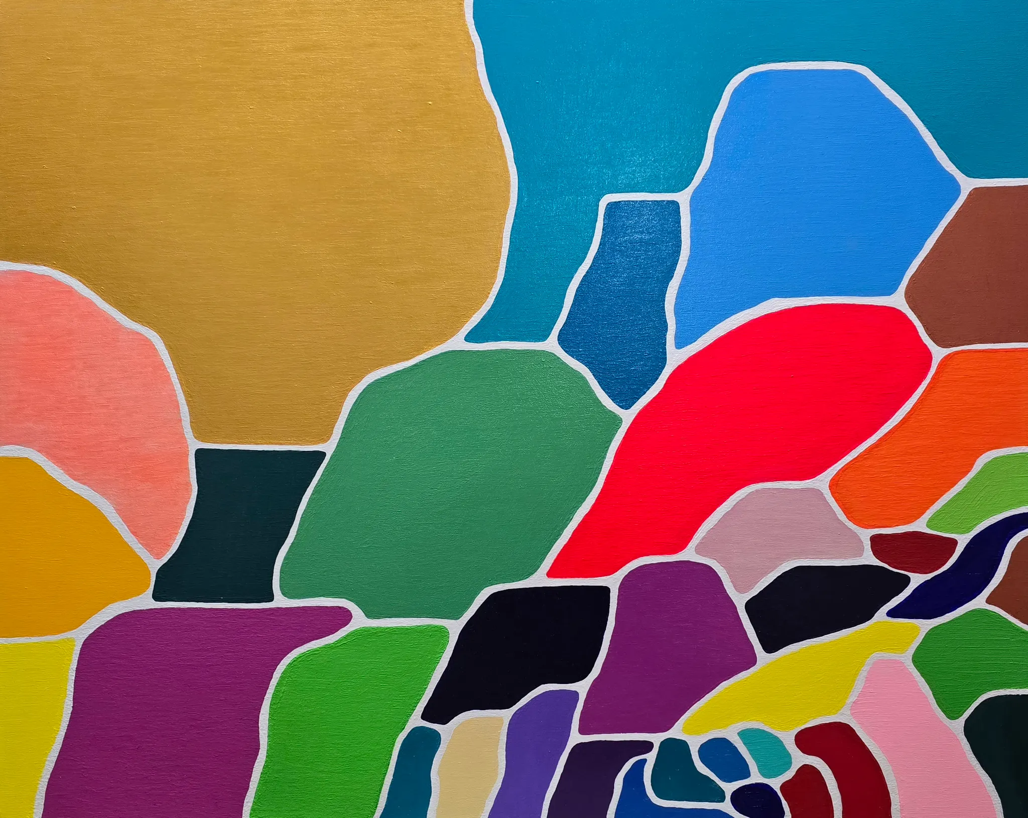 이번 작업에 우연적으로 있는 물감들의 양에 따라 나오는 다양한 면적과 모양이 됩니다