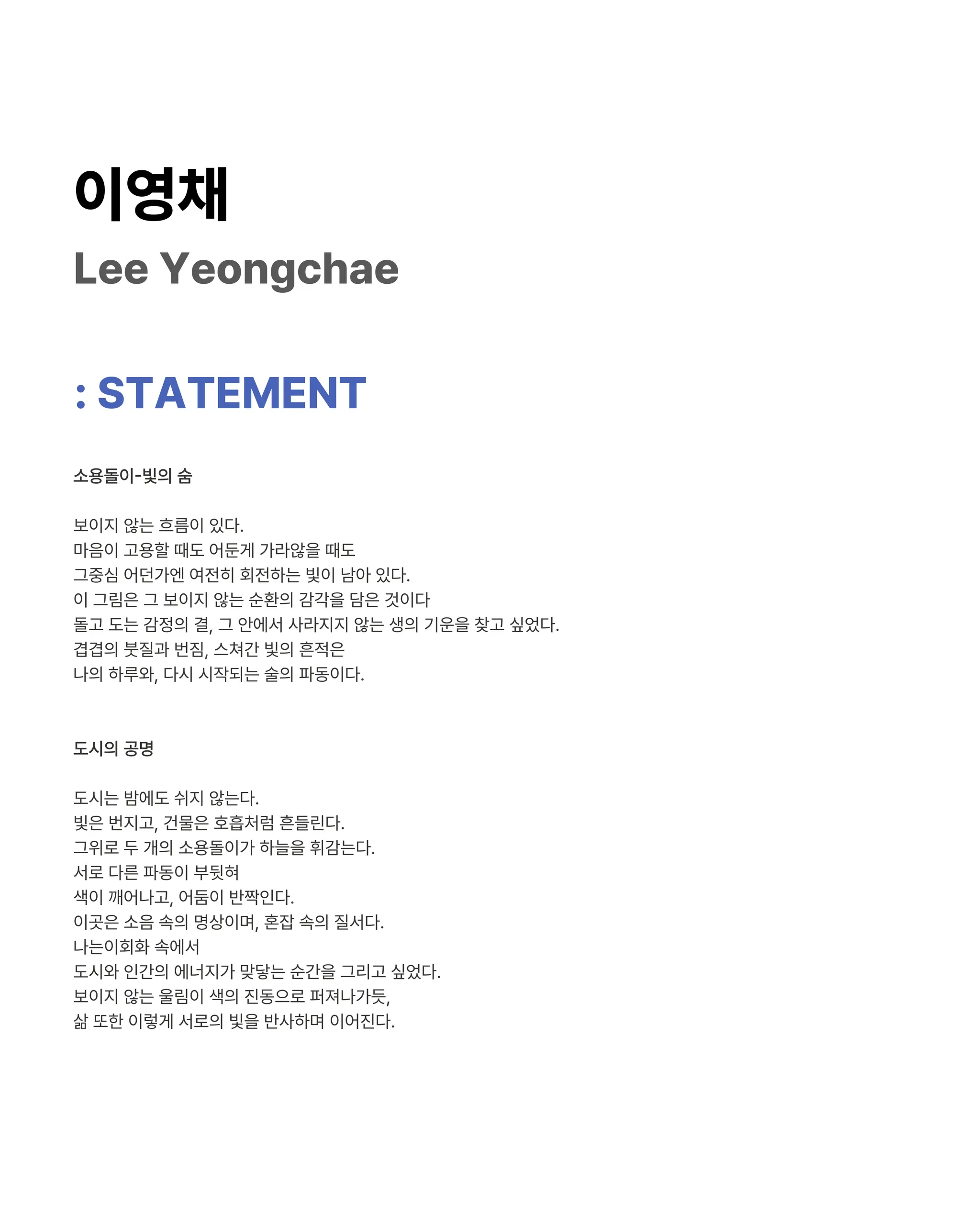 이영채, 소용돌이-빛의 숨, acrylic on canvas,40.9×31.3, 2025, 70만원