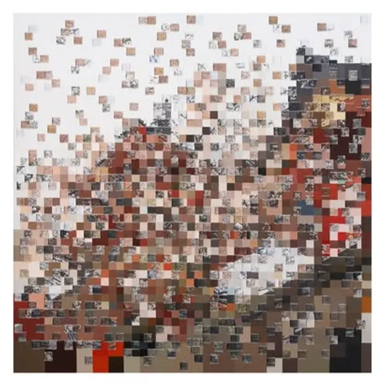 작업은 디지털 이미지의 해체와 물리적 회화 행위가 한 화면 안에서 충돌하고 재정립하는 방식을 통해 특유의 감상을 자아낸다. 픽셀 단위를 연상케 하는 분할들은 의도적으로 물리적인 사실 또는 현상과 유리되고자 하는 듯한 기조를 전달하는 것이 작가의 주된 조형적 서사라고 말할 수 있겠다.