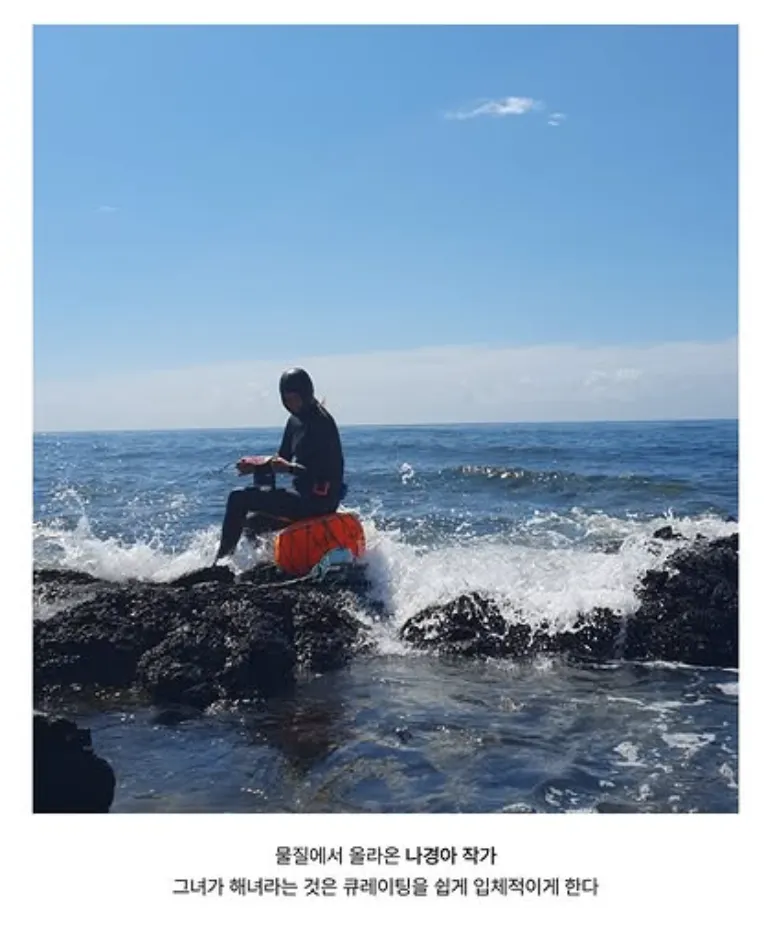 우리가 하는 일이 결국 대부분 먹고 사는 일로 귀결되어 소명과 고유함이라는 것의 경계가 흐려질 떄가 많다. 이러한 전개에서, 고유하며 감동을 줄수 있느냐에 대해서는 - 어떤 목적과 의미를 가지고 있는 - 누가 했는지에 따라 마음이 움직이기도 하고 그렇지 않기도 한다. 이 전개는 작업 자체가 양품인지 아닌지에 대한 논의가 아닌것 같다. (작가의 작업은 물론 양품이지만) 나경아 작가, 그만의 우주, 참을 수 없었던 바다 이야기를 아래에 담았다.