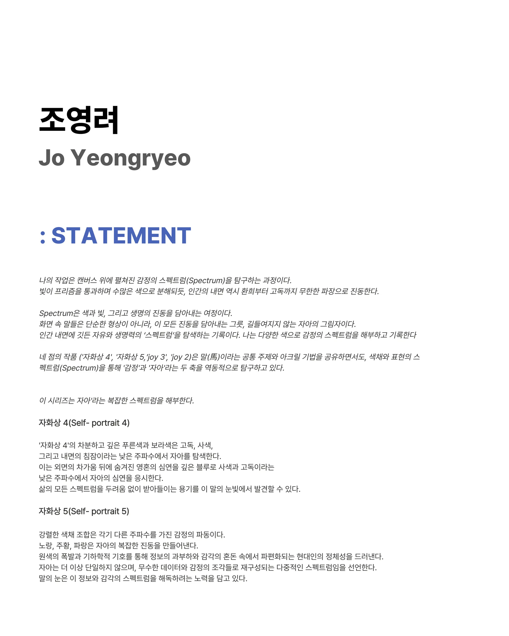 조영려 / 자화상 5(Self- portrait 5) / 캔버스에 아크릴 / 116.8x91.0 / 2025