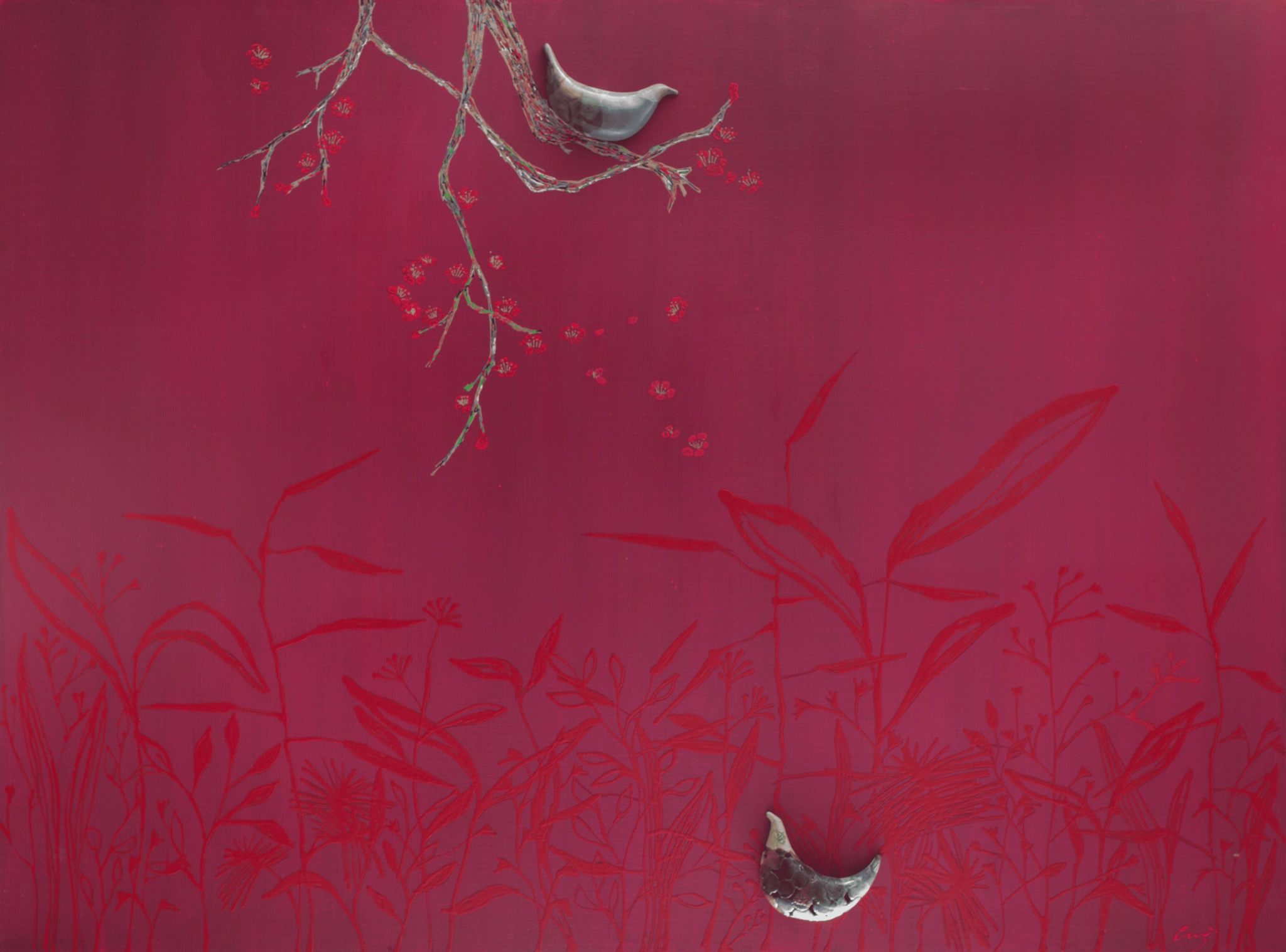 심윤주/화조도 Hwajodo / Acrylic on canvas & ceramics/130.3*97.0/2025 /10,000,000