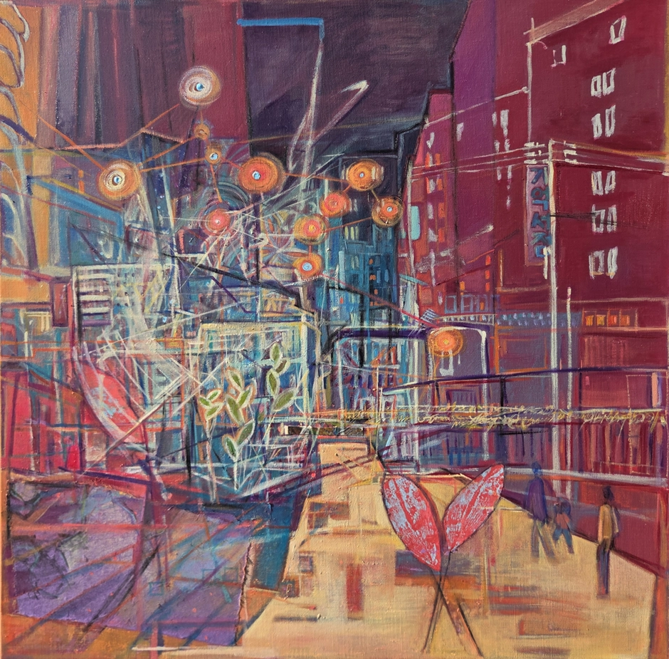 심은하 /The Next Plain_ Urban 10p.m. /Oil, 부분 아크릴, 한지 on canvas 72.7x72.7cm 2025/600만