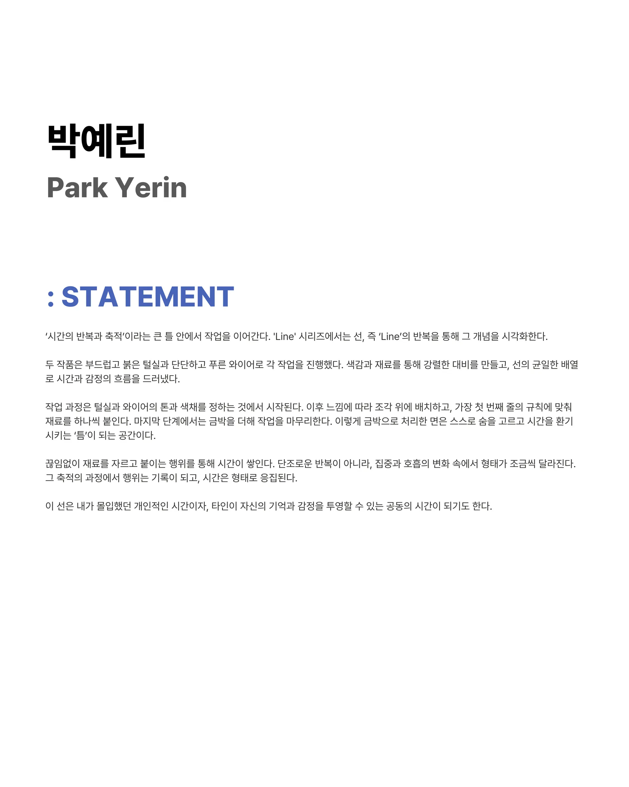 박예린 / Line: BLUE / 컬러와이어와 금박 / 90.9 x 72.7 cm / 2025 / 미판매