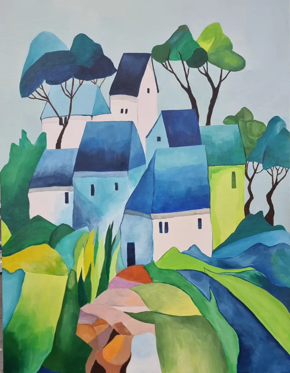 “꿈꾸는 푸른마을” 15P 65.1x50.0cm. 아크릴