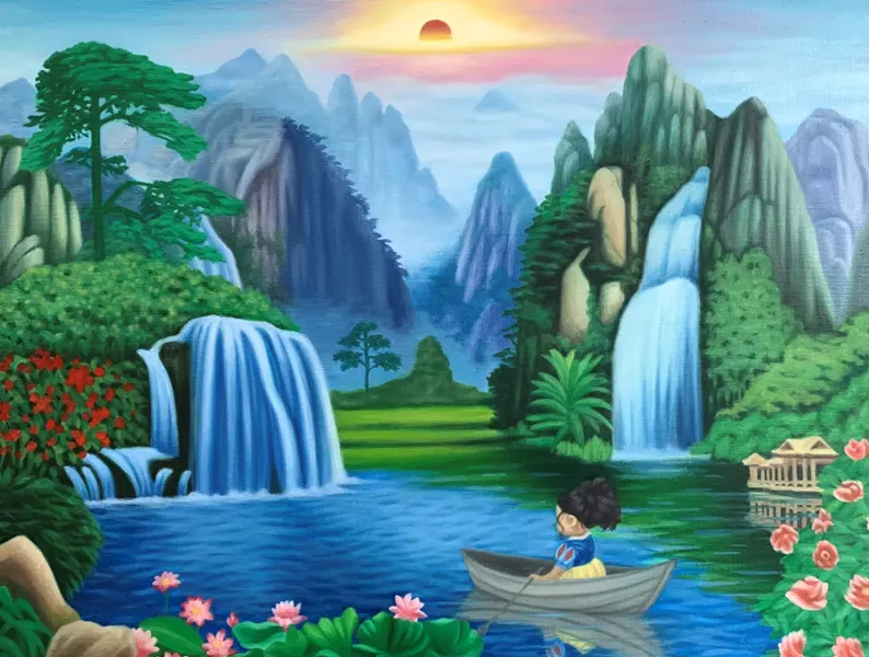유화작업으로 백설공주의 이미지를 소품과 주변의 상황을 연출하여 표현하였다