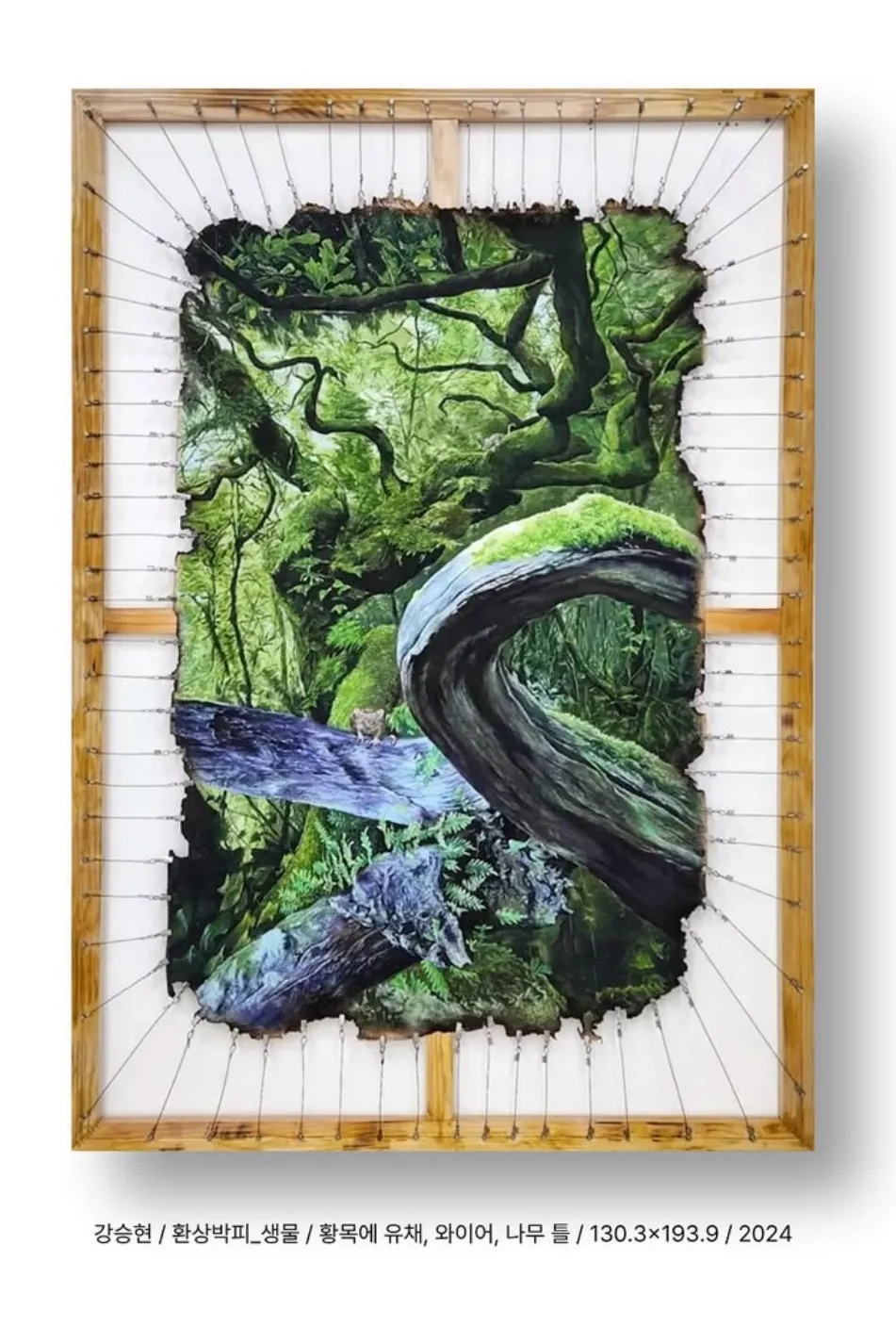 작업의 회화적 서사는 이미지의 틈에서 발생하는 감각적 흐름이며, 관람자가 그 틈을 메우며 스스로 생성하는 비언어적 상호작용에 가깝습니다. 익숙한 이미지가 박제된 세계에서 관람자는 자신의 기억과 신화, 경험을 호출해 이를 해석하고, 그 충돌 속에서 새로운 감각이 켜지는 순간이 바로 제가 말하는 ‘흐름’입니다. 작업 개념의 본질은 이미지가 가진 단단한 의미 구조를 잠시 느슨하게 만들어 관람자가 각자의 경험으로 해석을 확장할 수 있는 여백을 열어두는 것에 있습니다.