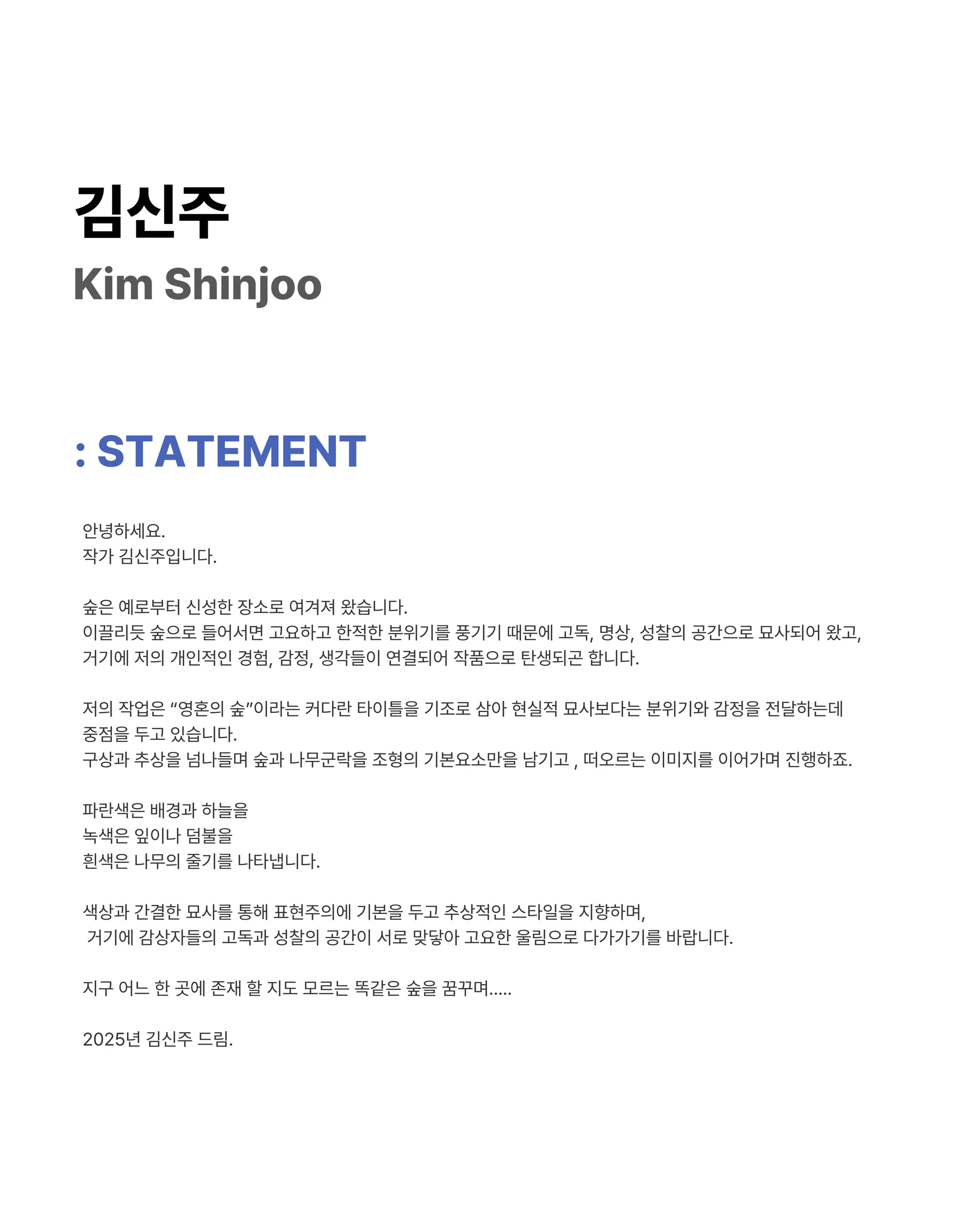김신주 / blue forest(영혼의 숲) / 캔버스에 아크릴 /91×65 / 2023 / 4,500,000
