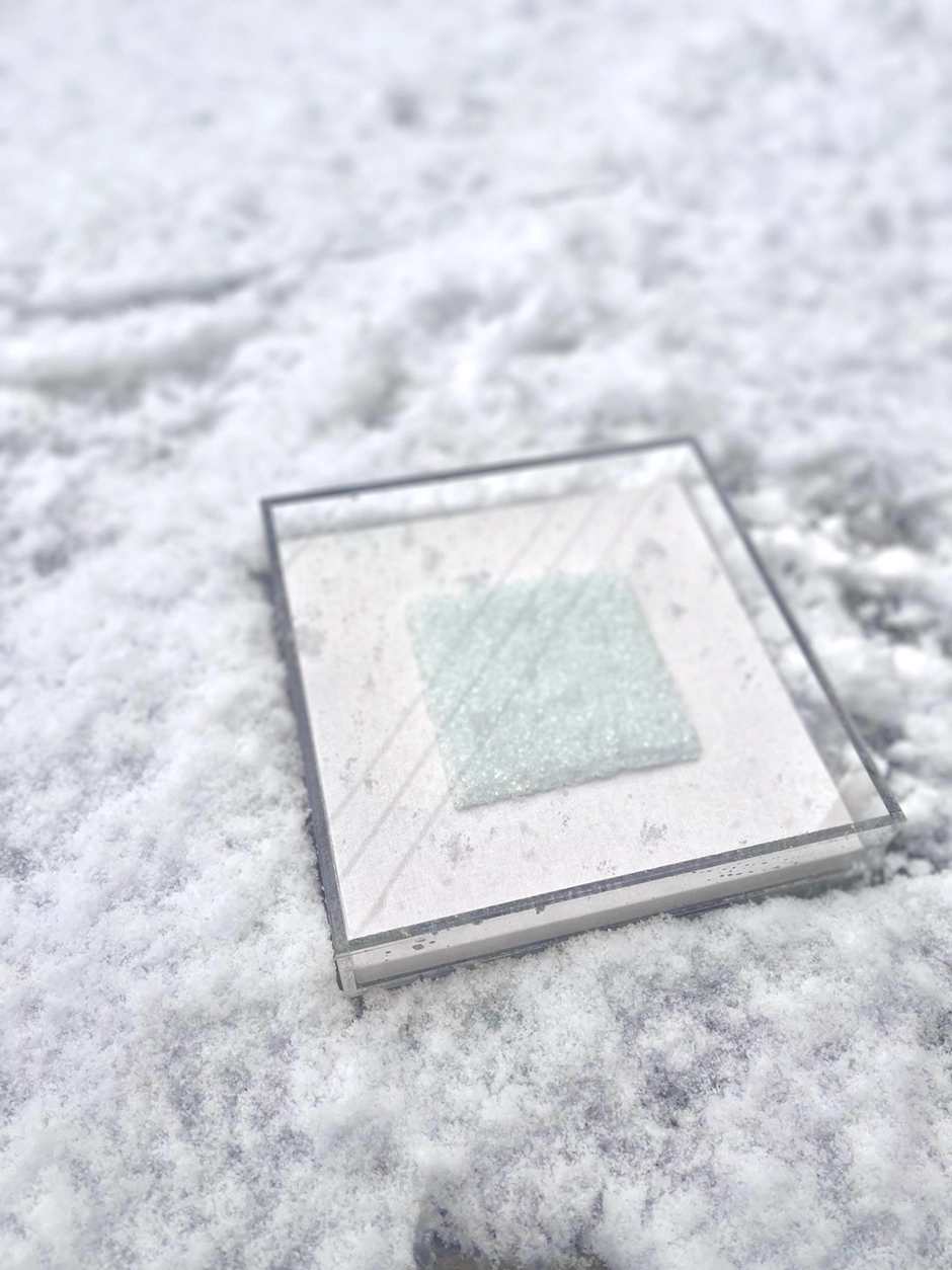 강태이 / 설원의 윤슬 series 2 / Pâte de verre (Glass Frits01) / 11x11x0.5 (cm) / 2024년 제작 / 400,000 (아크릴액자포함)