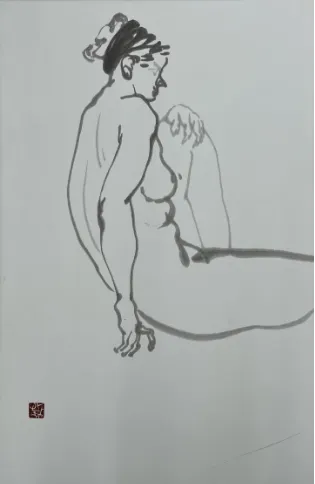 내가 안남욱을 처음 만난 2021년부터 그는 꾸준히 인체 크로키를 해왔다. 해부학적인 관찰이 정확한 것은 물론이고, 종이 위에 날아다니는 그 선은 작가 본인도 의식 못할 정도로 자유롭다. 대상으로 삼은 사람의 몸짓이나 표정에서 그 인물의 나이나 성격까지 전해진다. 인체 크로키로 그 정도까지 표현하려면 몇 년은 걸리고, 그 과정은 작업보다 수련에 가깝다. 3분 정도의 짧은 시간 안에 골격과 표정, 질감까지 한눈에 파악하는 수련은 마치 스님이 도를 닦는 것과 비슷하다.