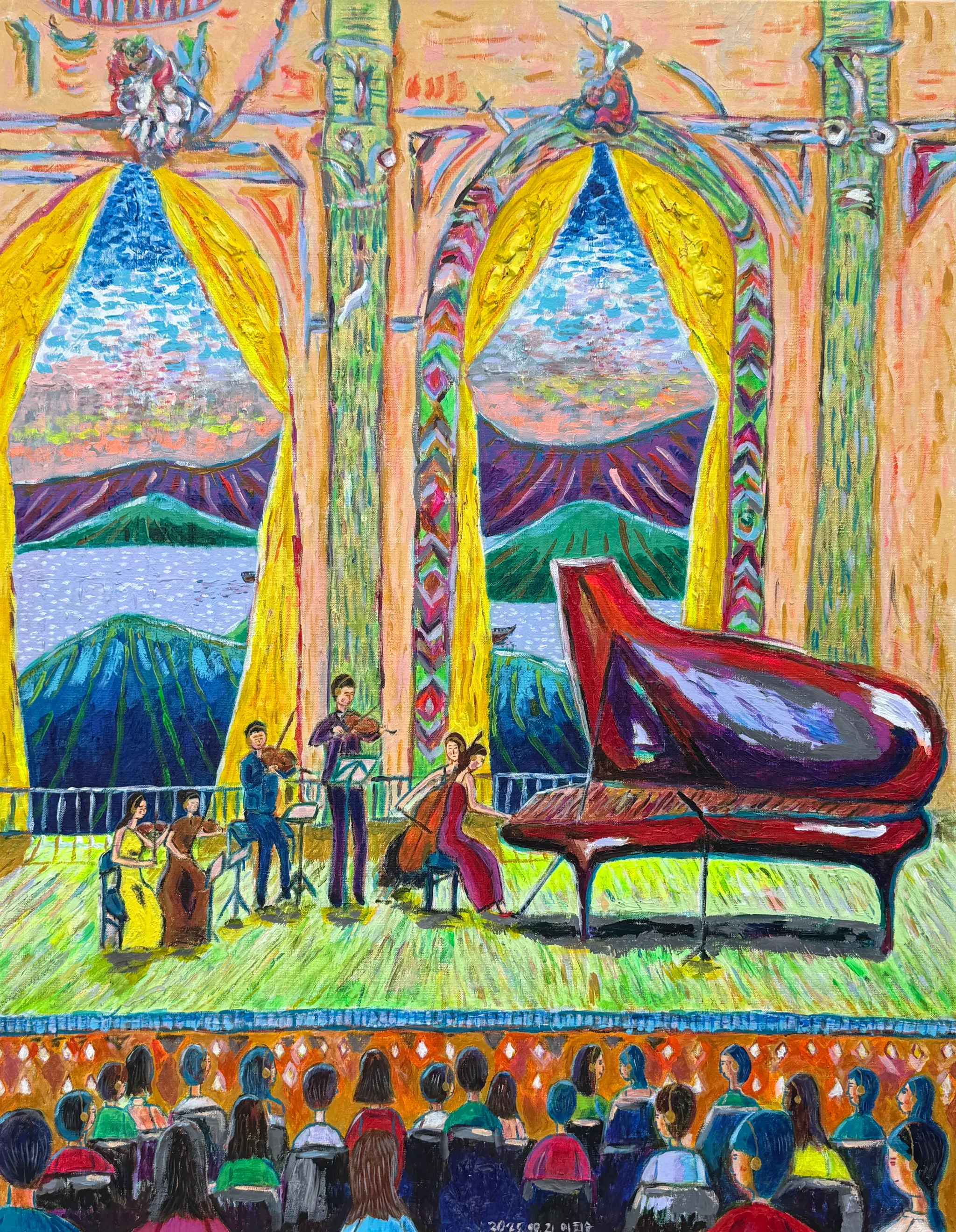 빛은 고정된 형태가 아닌, 시간 속에서 변주되는 감정의 파동이자 존재의 흔적입니다. 그래서 제 그림 속 빛은 언제나 머무르지 않고, 느리게 번지며 사라지려는 순간을 담고 있습니다. 제 그림 속 빛은 그렇게 시간의 층위를 머금고 우리의 지금 속에 영상 되고 있습니다.