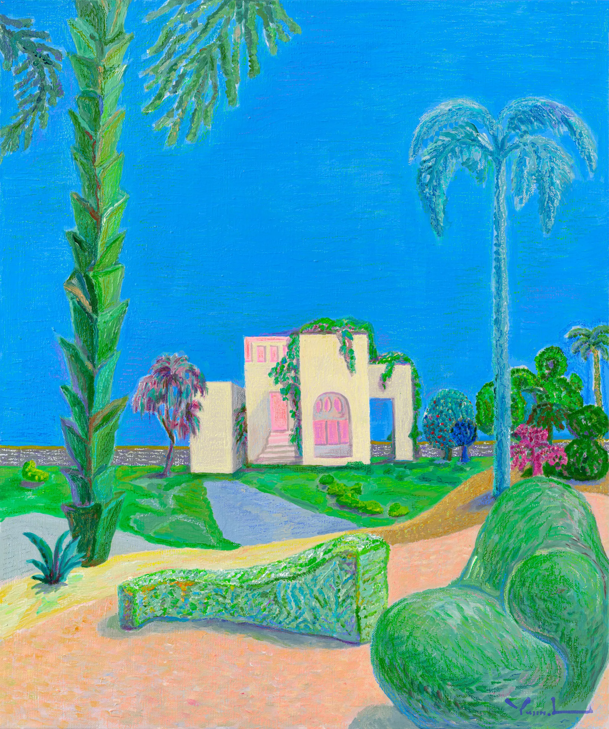 저는 이러한 내면의 감정을 이미지로 옮기려 합니다. 그것은 무겁거나 특별한 소재라기보다, 일상 속에서 문득 떠오르는 공간, 여행 중 스쳐 지나간 풍경처럼 익숙하면서도 낯선 장면들입니다. 자연이 주는 편안함과 어디선가 본 듯한 공간의 조합을 통해, 바쁘게 흘러가는 일상 속에서 잠시 머물 수 있는 ‘쉼의 감각’을 전달하고 싶습니다.