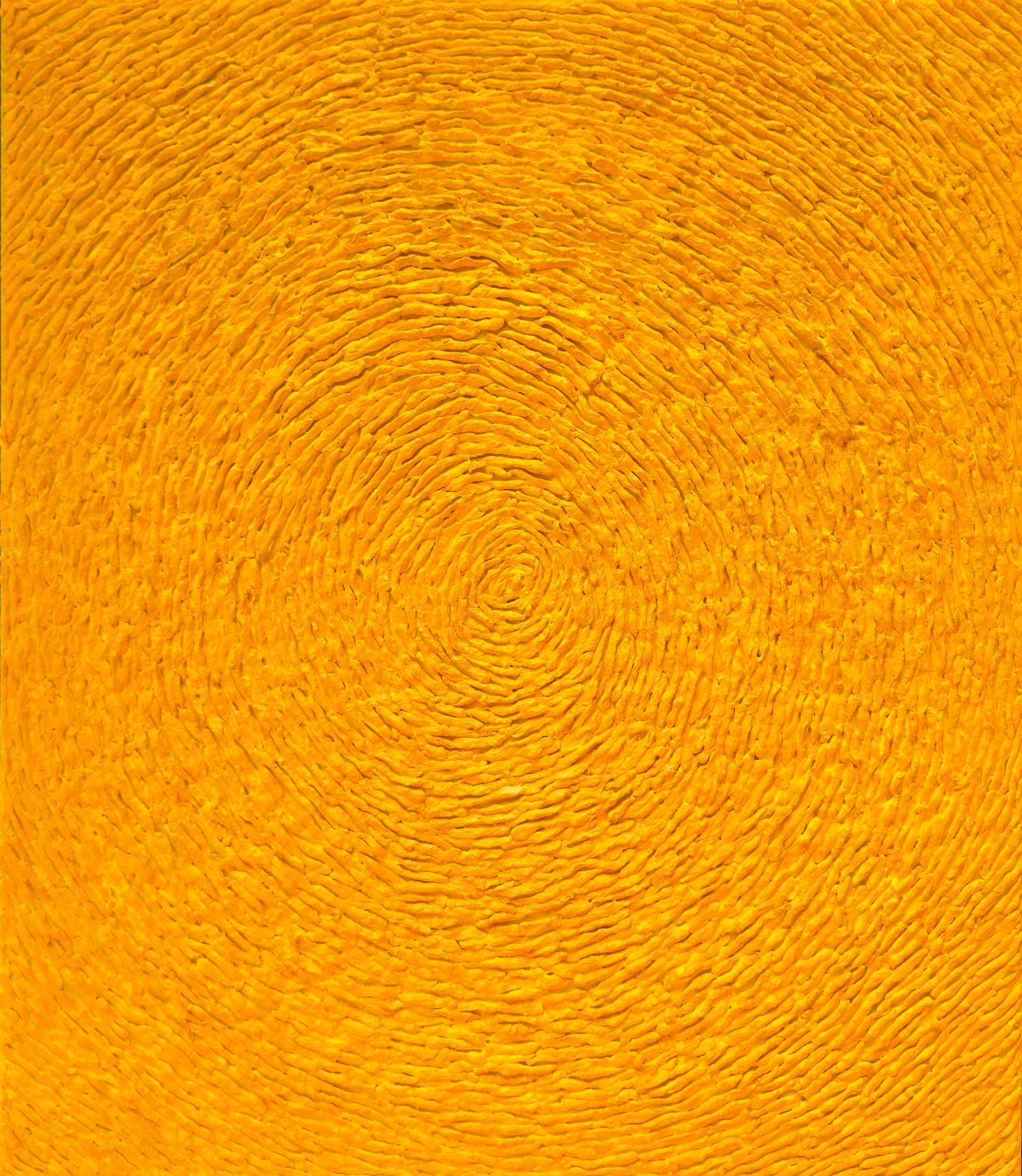 종이 죽으로 내면의 덩어리들을 캔버스에 나이프로 헤치며 풀어낸다. 작업은 마치 기도하고 있는 사람처럼 바라보는 시선과 공명한다. 작가는 우리를 형성하는 눈에 보이지 않는 것들의 조형을 찾는 과정이라고 말하고 있다.