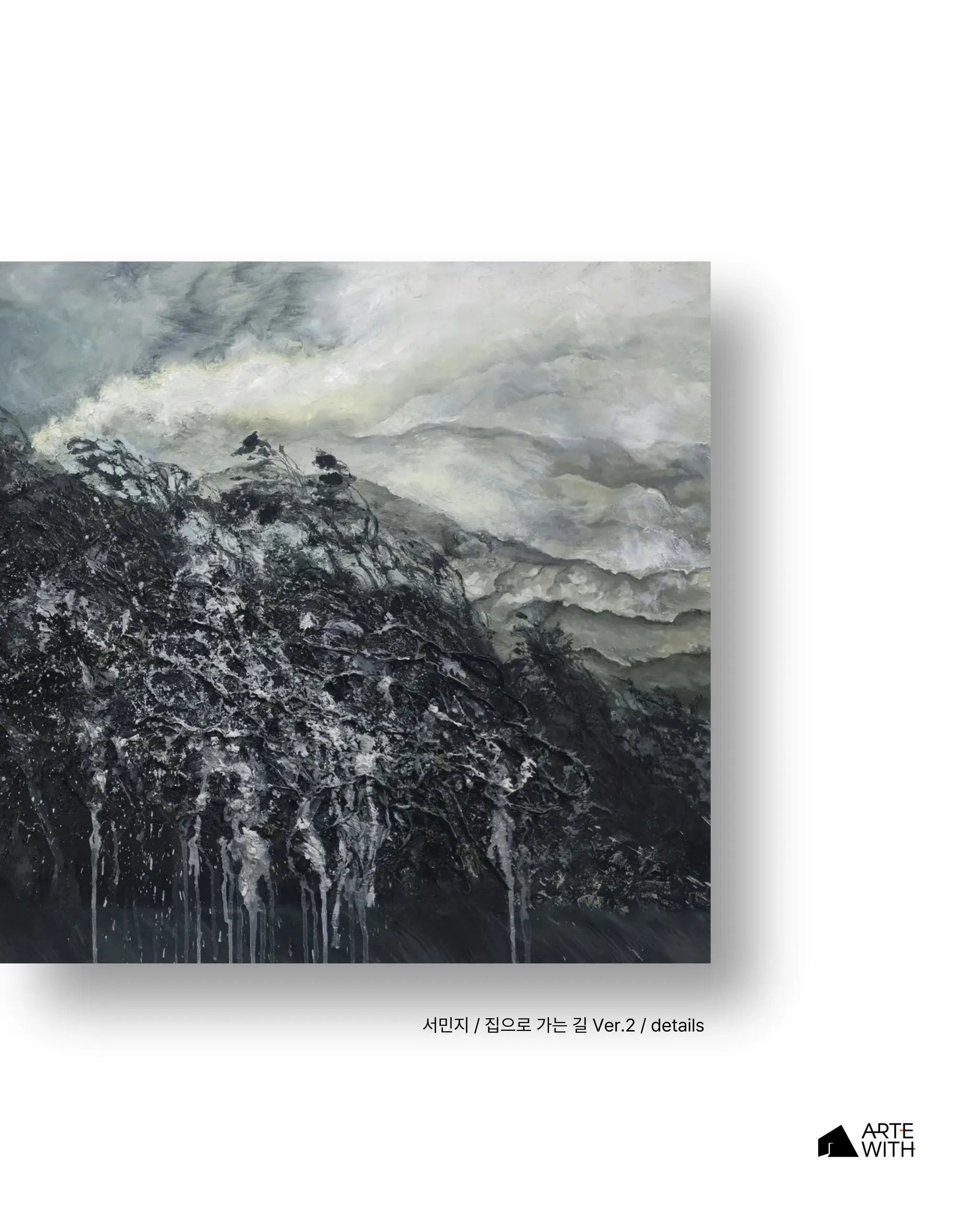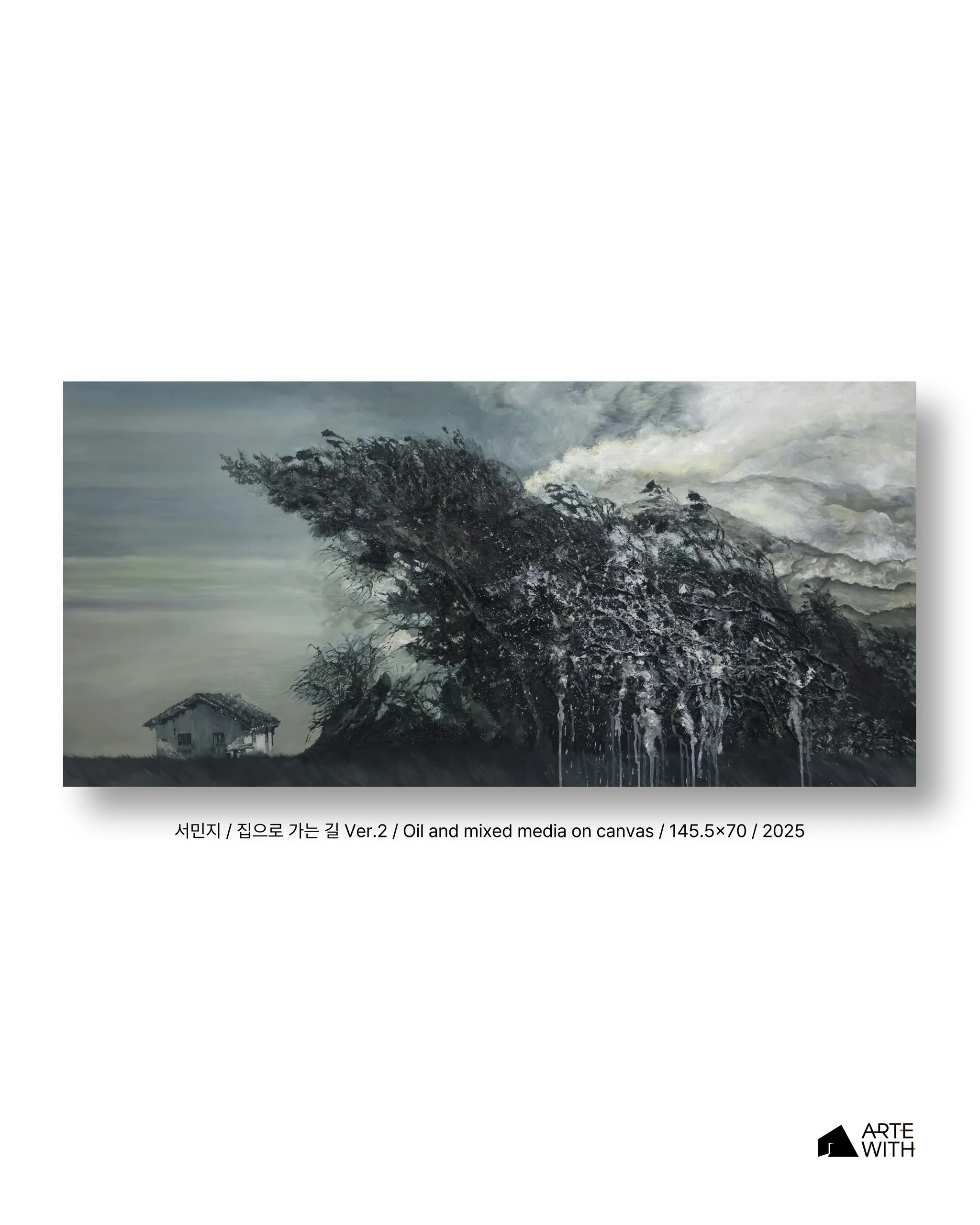 이러한 인식은 화면의 조형과 물성 속에서 견고한 외곽선이나 안정된 원근 속에 고정되지 않고, 주변 환경과 충돌하며 압력과 중력의 방향성에 따라 흔들리고 떠밀린다. 물성은 균질하게 마감되기보다 덧칠과 삭제, 뭉침과 비움이 반복되는 방식으로 구축되며, 이는 마치 기억이 작동하는 방식을 연상하게 한다. 물감의 두께와 화면의 밀도는 감정의 무게와 직접적으로 대응하며, 집은 그 감정들이 응축된 하나의 조형적 상징으로서 존재한다.