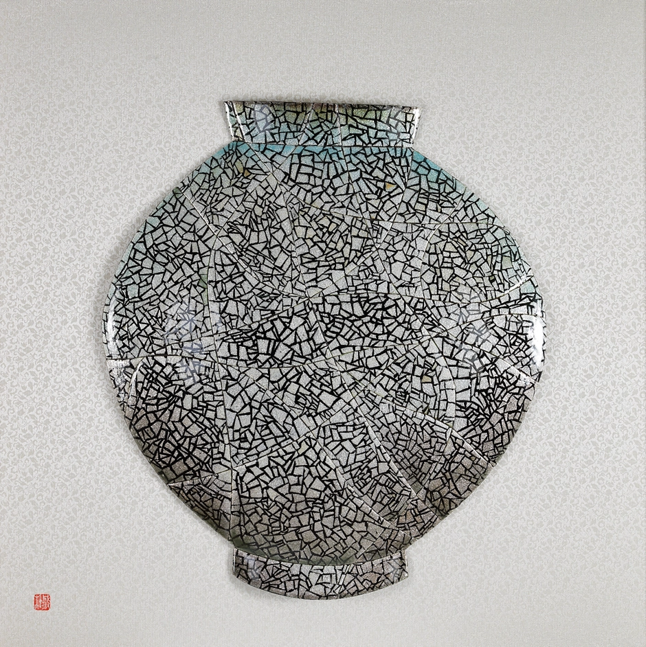 박성숙/Silvermoon_gray/금속(동),칠보유약,24kgold,순은박,비단배색/60.6ⅹ60.6/2025 /2,800,000