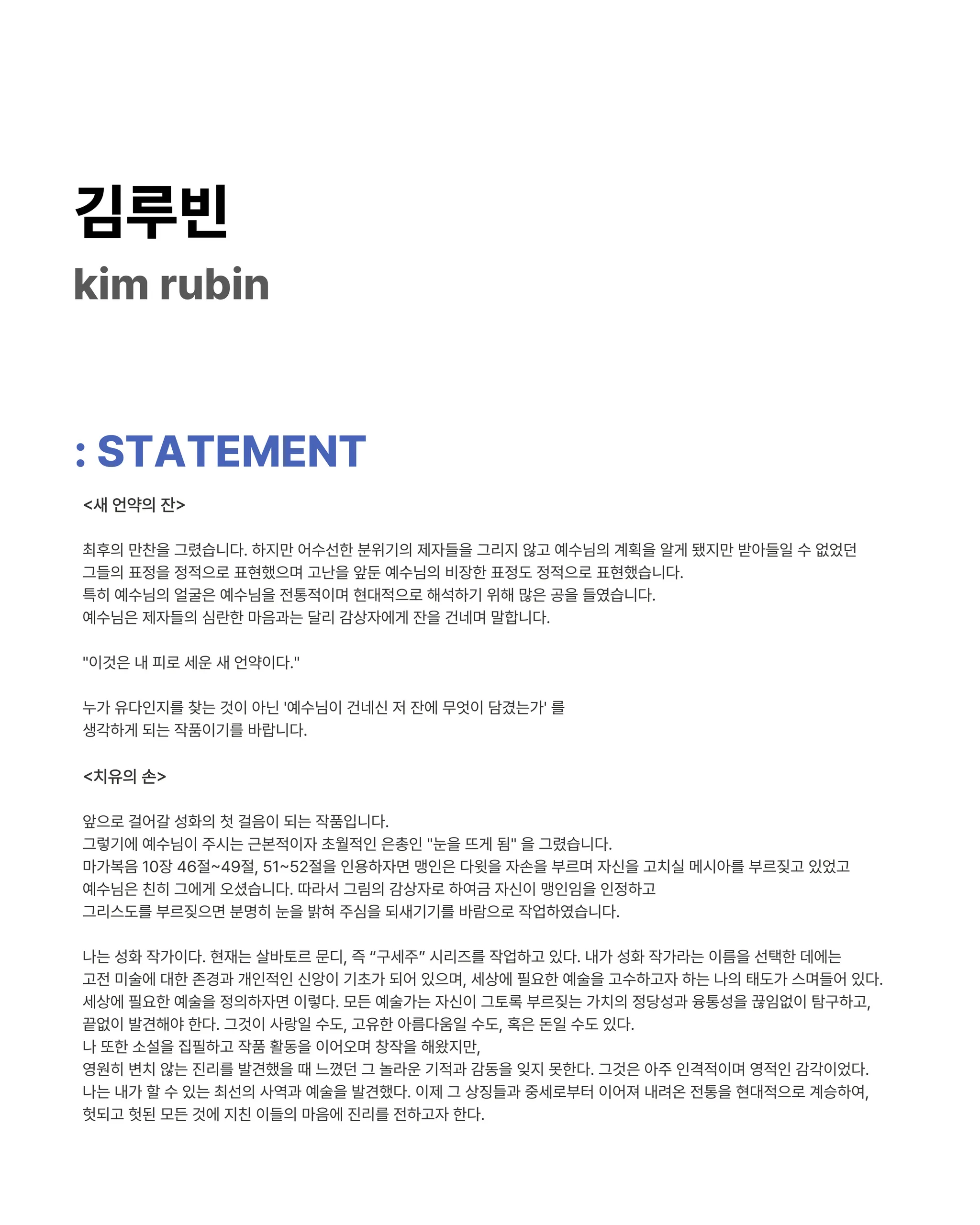 김루빈/ 새 언약의 잔/ oil on canvas/ 162.2cm x 130.3cm/ 2026/ 1.000.000