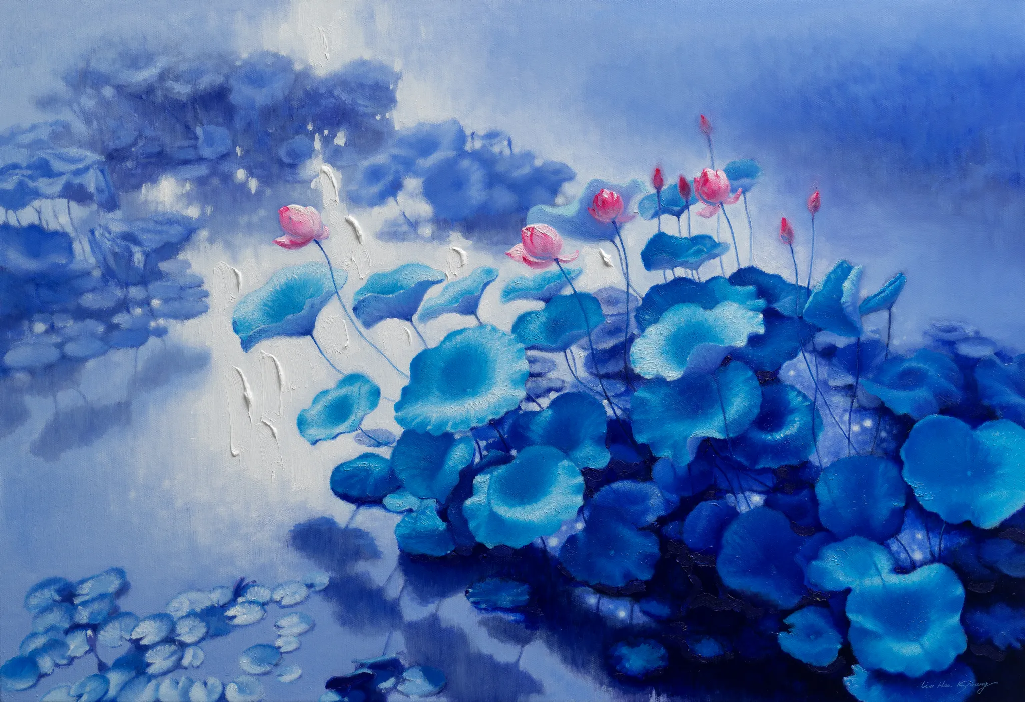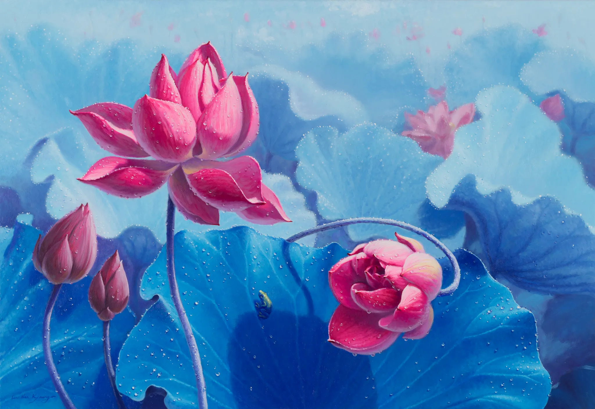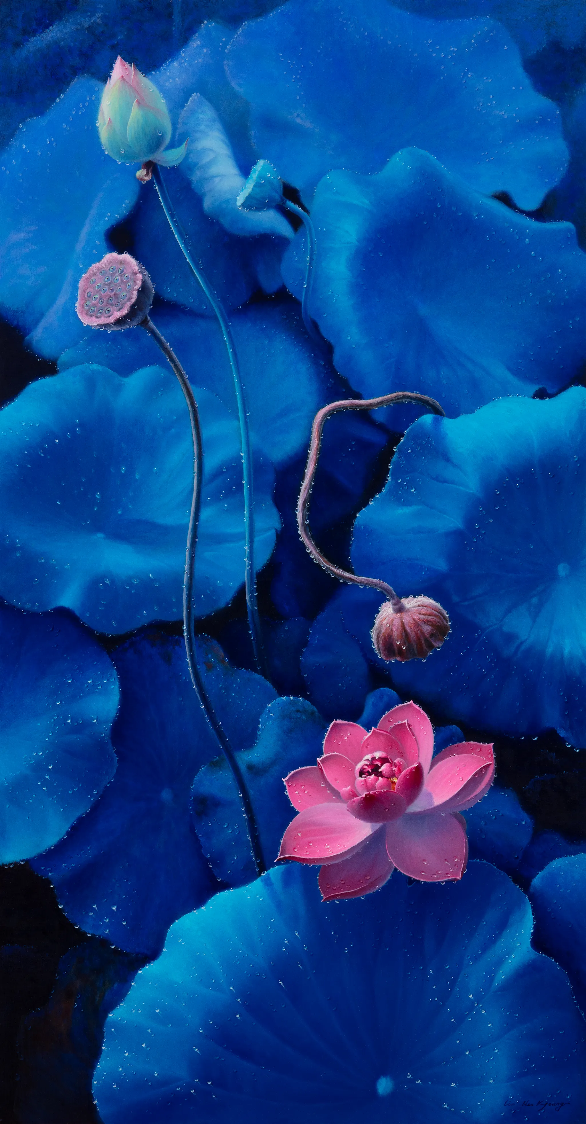 한바탕 비바람이 몰아친 다음 날, 언제 그랬냐는 듯 눈 부신 햇살 속에 당당하게 만개한 연꽃도 위화 작품의 주인공처럼 저에게 위로의 꽃으로 뭉클하게 다가왔습니다. 연꽃을 그리며 위로와 희망의 에너지를 얻습니다. 그런 작품을 통해, 자기만의 꿈을 품고 묵묵히 걷고 있는 분들에게, 그 여정의 끝에 기쁨이 기다리고 있다는 응원의 메시지를 전하고 싶습니다.