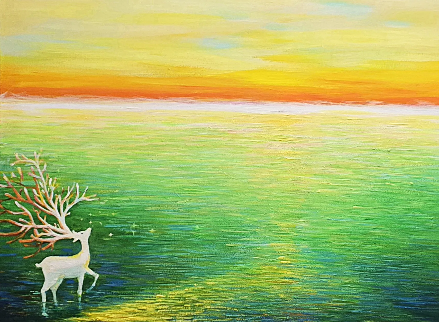“하늘을 향한 사슴, 빛 스민 물결.그 위로 고요히 번지는 사유의 흔적.”