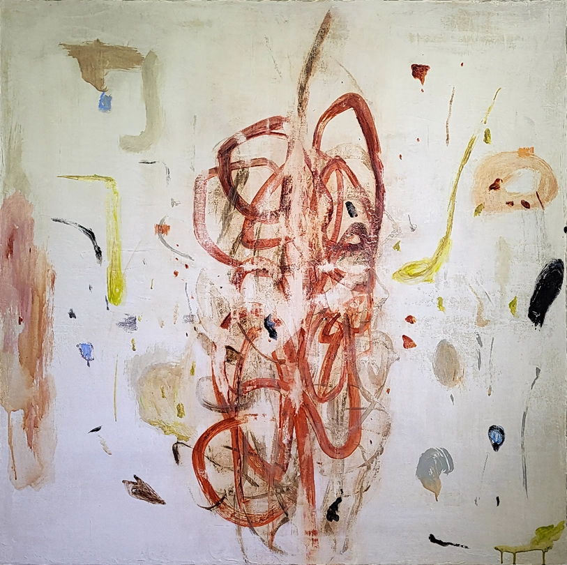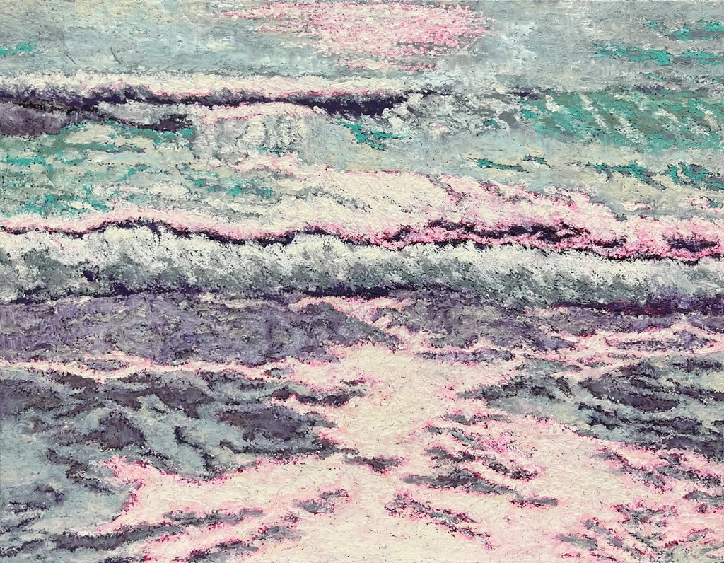 화자는 단일한 순간의 기록이 아닌, 여러 겹의 망설임과 결정 사이 사유의 전이와 확장을 재료한 층위를 이루며 쌓은 개념을 전달하는 주체이겠습니다. 획과 색이 새로운 획과 색에 잠기고 드러나며 화자의 감도를 구축해내가는 팔림프세스트적 광경. 이러한 복합적인 시간성과 공존하는 감각의 장(場)을 목도하고자 합니다.