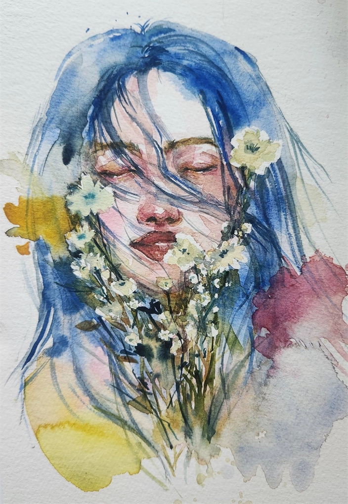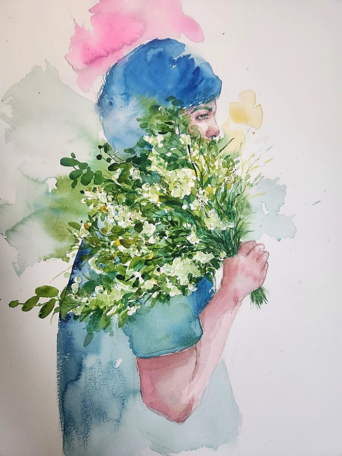 알리스리/THE MAN WITH THE FLOWERS/ 종이 위에 수채/ 78 X 55CM(액자포함) /2026/800,000원