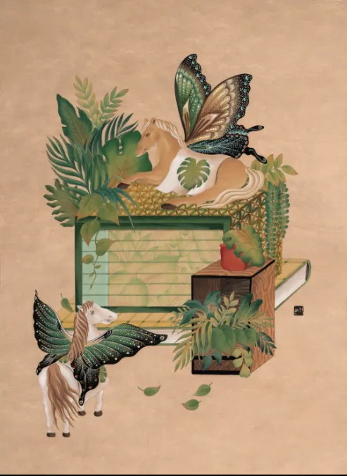 주제화된 말의 이미지는 작가가 민화의 호렵도를 그리며 떠오르게 된 아이디어를 중심으로 작업했으며,