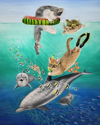 유영빈 / 달콤냥이들 / Oil on canvas / 116.7×90.9cm / 2024 / 300만원