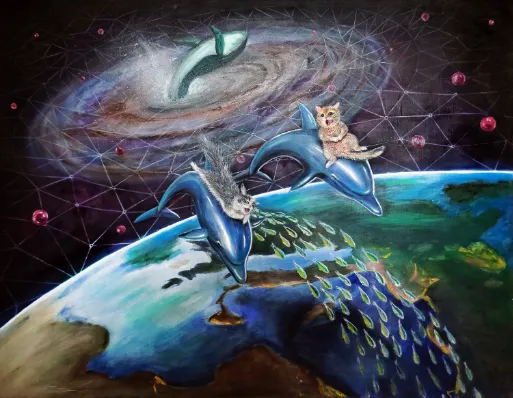 ‘트루먼’은 용기 있게 자유를 찾아 새로운 삶에 도전하며 살아보려는 선택을 했지만, 아쉽게도 집사의 집을 뛰쳐나와 자유를 찾으려 해도 인간을 위해 설계된 도시화 된 환경은 고양이에게 배고픔과 위협을 안겨줄 뿐 진정한 자유를 찾아줄 수가 없다. 현실적으로 고양이의 자유를 찾아 진정한 행복을 느끼게 해줄 수는 없지만, 그림으로라도 인간을 위한 세상 속에서 벗어나 고양이가 삶의 주체가 되어 꿈꾸는 것을 마음껏 할 수 있는 자유로운 세상을 선물해 주고 싶은 마음이 들었다. 꿈꾸는 그림 곁에 잠들었을 때 꿈 속에서라도 진정한 자유를 느끼며 행복한 고양이를 위하여...