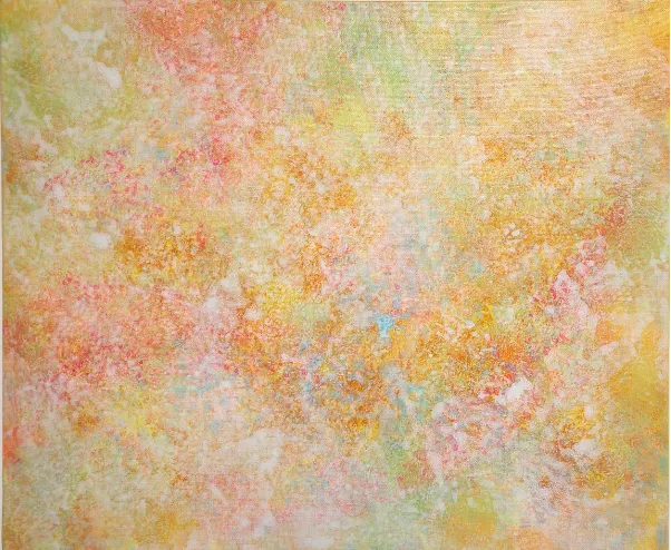 재료가 가지고 있는 본연의 성질과 특성을 살려 물감을 바르며 겹치고 뿌리며 번지고 흐르는 기법을 통한 현상, 붙이고 긁어내는 등의 행위와 색(컬러)을 통해 개인적 서사와 다양한 일상적 경험들의 축적인 삶을 표출하고 반영하며 관념과 형태를 해체, 은유적 이미지로 표현하여 추상화했다.