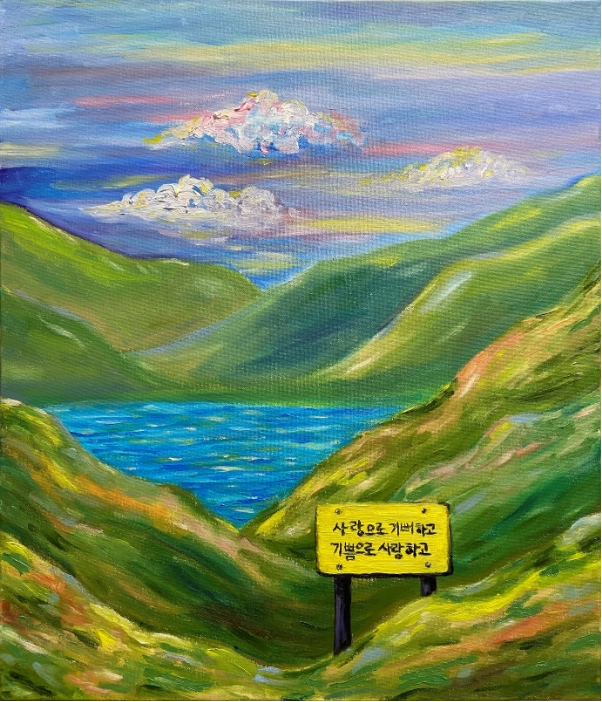 윤지호/ We‘re happy with love / oil on canvas / 기업은행 660-039126-01-011/ 45.5 x53cm /2024/ 500,000원