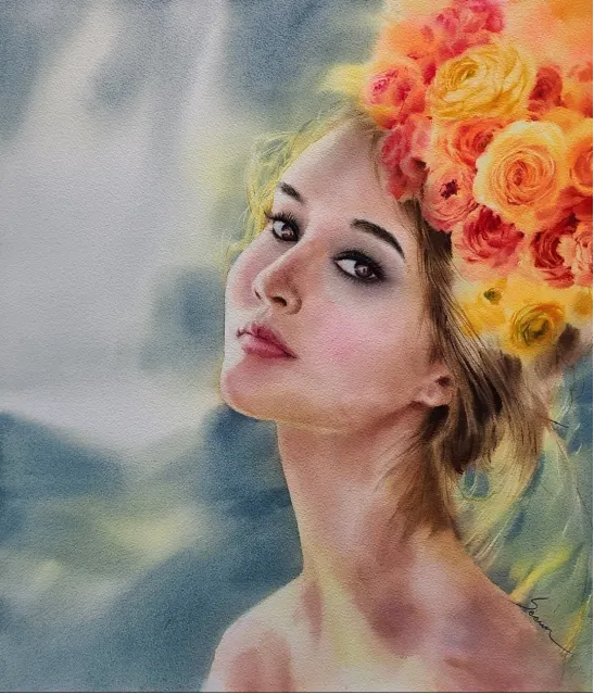 이세은 / 왕관 쓴 여인 / Watercolor on arches / 72.7x60.6 / 2023 / 2,000,000.