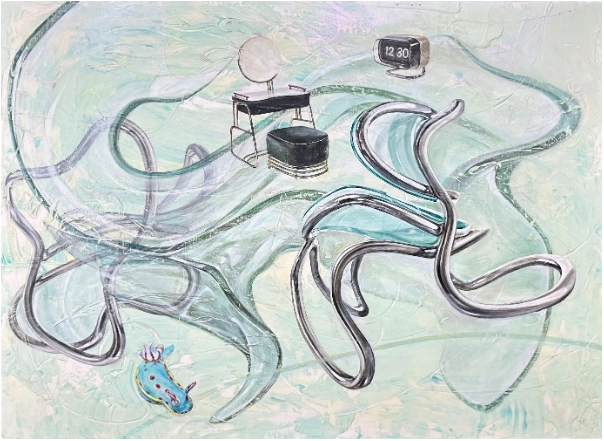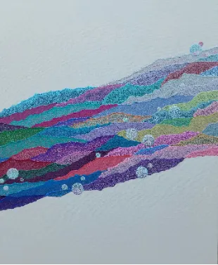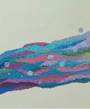 다양한 색의 곡선으로 중첩해서 면을 채우는 반복적인 행위는 불교에서 말하는 공(空)에 이르는 수행과도 같다. 곡선의 겹침은 단순한 기법이 아닌 나의 삶과 시간의 집합이며 마음을 비우는 과정을 담은 결과물이다.