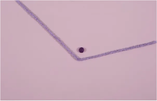 선은 무수한 가시들로 이루어져 있습니다. 짙은 보라색으로 표현된 나는 선으로 표현된 세상의 가장 모서리 혹은 세상 밖에 존재하는 듯 보입니다.