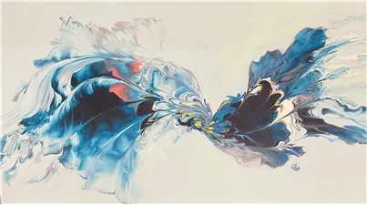 흐르는 물감 (플루이드기법) 은 즉흥적인 작업으로 유동적이며 살아있는 유기체와 같이 마음을 따라 흐른다.