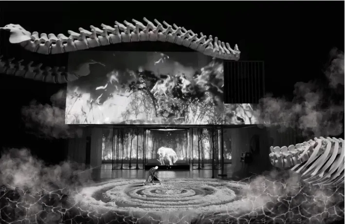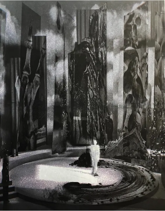 잠재의식에 접근함으로써 자아를 초월한 무언가를 활용한다. 놓칠 수 있는 마음 깊이 들여다보는 능력은 창의성의 뿌리이다. 생각을 줄이고 내면에서 들려오는 답에 기댈 수 있게 된다. 연극을 보며 영감을 떠올리고, 참고자료를 수집하며 감정을 그려낸다. 한지 위에 에어브러쉬를 통해 먹물을 분사하여 안착시킨다. 작업은 컴프레셔에서 공급되는 압축 공기의 분출 효과로 먹물을 안개상태로 만들어 뿌리는 새로운 형태의 수묵화이다. 에어브러쉬의 사용은 현실과 먼 느낌을 부여하고 미래세계의 미감을 구현한다. 또한 먹색은 모든 색이 뒤섞여 있음으로 많은 것을 포괄하는 컬러이자 물질이다. 이처럼 먹으로 포착한 장면에는 순간이자 영원이 담겨 있는 듯 느껴진다.