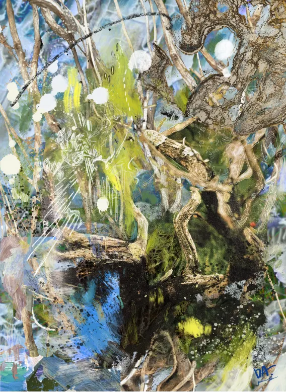 신천재 / 공중둥지의 숲 : 새벽으로부터 이어지는 아침 002 / mixed media on canvas