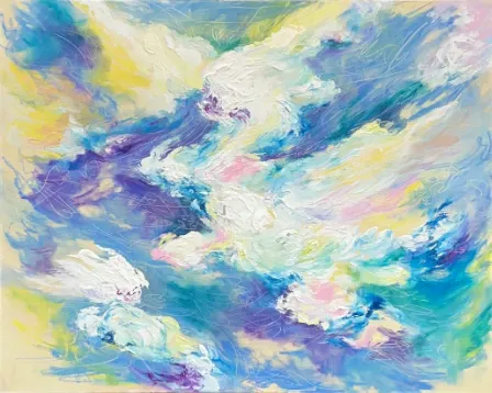 삶에 위안을 주는 짧은 찰나의 순간들 인 것이다. 그리고 그 감정의 기억을 더듬어가는 형태로, 물감의 층을 서로 덧대고 엉키며 쌓아올라가는 형식으로 그 순간성의 틈을 표현하고자 한다.