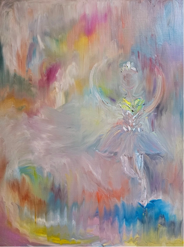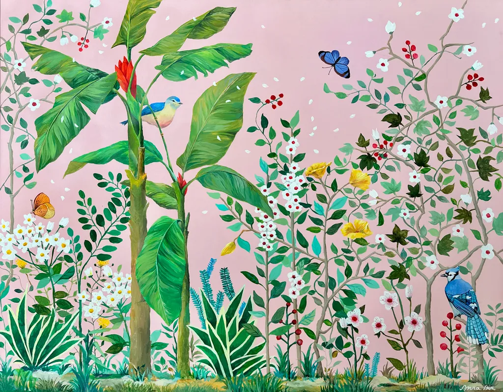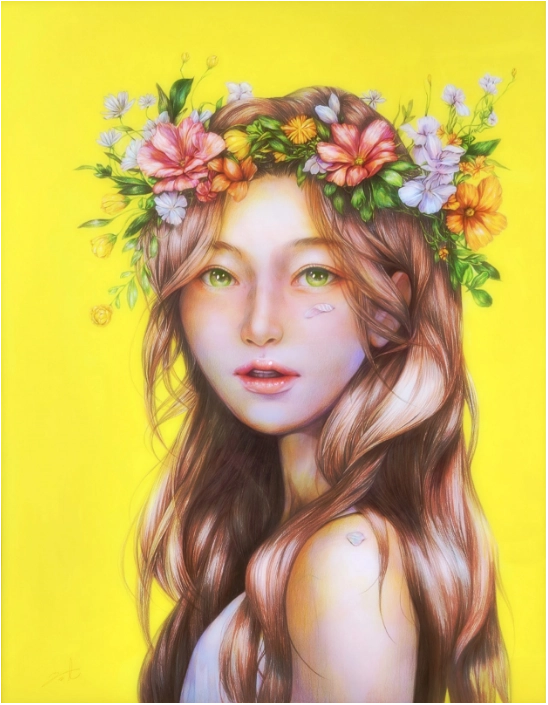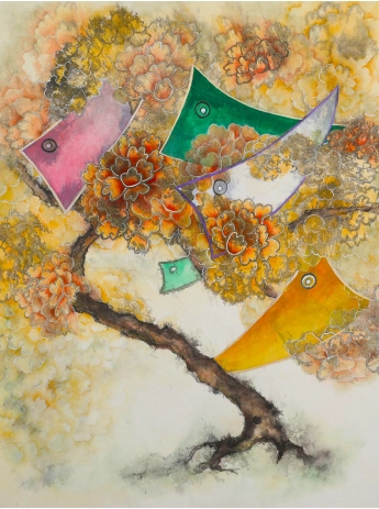 최은진 / 꽃이 되고 바람 되어, 날다 /장지에 먹과 채색 /46 x 46 /2023 /1,600,000