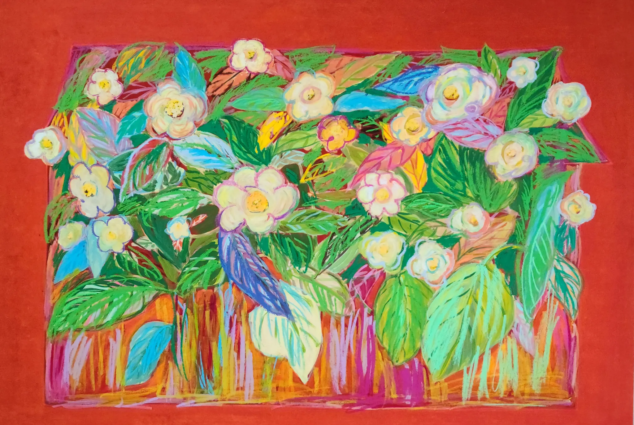송채연/ my flower hut 2258/80.3cm x 116.8cm/ 장지에 혼합재료/2022/ 750만원