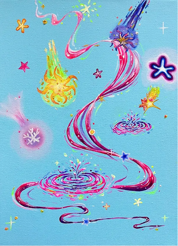 김연수 / 떨어지는 별이 나에게 부딪힌다 / 신한 110572912440 / 캔버스에 아크릴과 유채 / 2024 / 33.4 x 24.2cm / 600,000