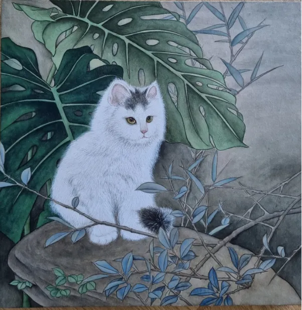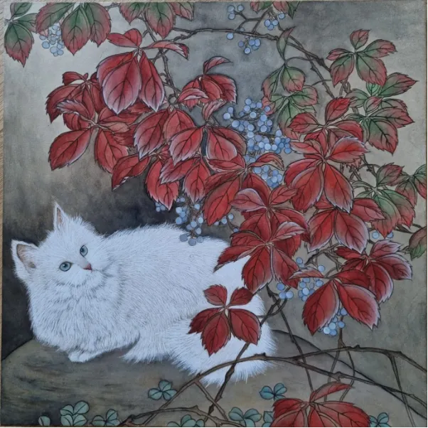 이연주 / 꿈꾸는 고양이 1 / 한지에 한국화 물감 / 36×36 / 2024 / 700,000