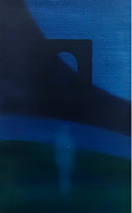특히 ‘대자연’은 숭고를 불러일으키는 대상으로 판단내릴 수 있는 대표적인 이미지였기에 <A Place of Sublimity, 2017~2021> 연작은 흰 캔버스 위에 자연을 표현하는 것부터 시작한다. 그후 색을 덮어 올리는 과정(Layering)을 진행하는데, 여기서 나는 색이 올라간 뒤 모호하게 드러나는 자연의 이미지에 주목하게 된다. 작품 안에 보일 듯 말 듯하게 비춰지는 이미지들은 관객에게 시각적인 불편함과 좌절을 경험하게 하고, 이는 숭고의 부정적인 특성과 관련이 있다. 또한 작품을 관람할 때, 멀리서보면 파란색 화면일 뿐이지만 거리가 가까워지는 순간 모호하게 드러나는 자연의 이미지들을 발견하기를 의도하였다.
