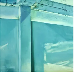 실제 공간을 포착하여 모방한 내면은 당연하겠지만 크고 작은 상처도 있고, 외부로부터 받은 영향도 있고, 그림자가 지거나, 부서지지 않을 것 같은 구조를 갖고 있다. 이런 묘사는 <내면의 예시>에서 다소 직접적으로 보여지지만 <임시공간>와 같은 맥락으로 임의적으로 실제 공간을 가져와서라도 애매한 심리를 표현하고픈 갈증이 있다. <경계 너머를 관찰하기> 역시 마찬가지로 공간의 일부분을 수집하고 특징을 기록하는 과정 중의 작업이다. 다양한 각도로 이루어진 이 공간에는 눈치 채기 힘든 투명한 벽이 있고, 실물이라면 만져서라도 확인할 수 있을텐데 그림이기 때문에 촉감으로도 알아챌 수 없도록 이미지의 단면적인 특성을 이용했다. 유화로 리얼리즘을 작업할 때는 언제나 묘사의 정도가 관건인데, 그 불분명하고 애매한 묘사 마저도 허용되는 추상적인 공감임을 말하고 싶다.