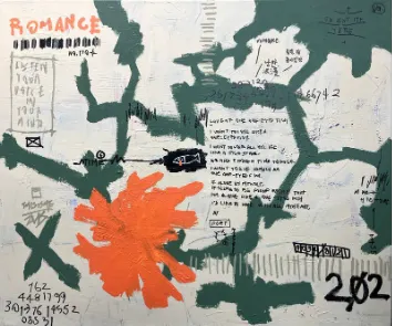 자유로운 구성 방식, 정해지지 않은 터치와 색감, 텍스트를 통해 보는 이로 하여금 자유를 느끼게 하고 숨겨진 의미를 찾아가는 재미를 제공한다.